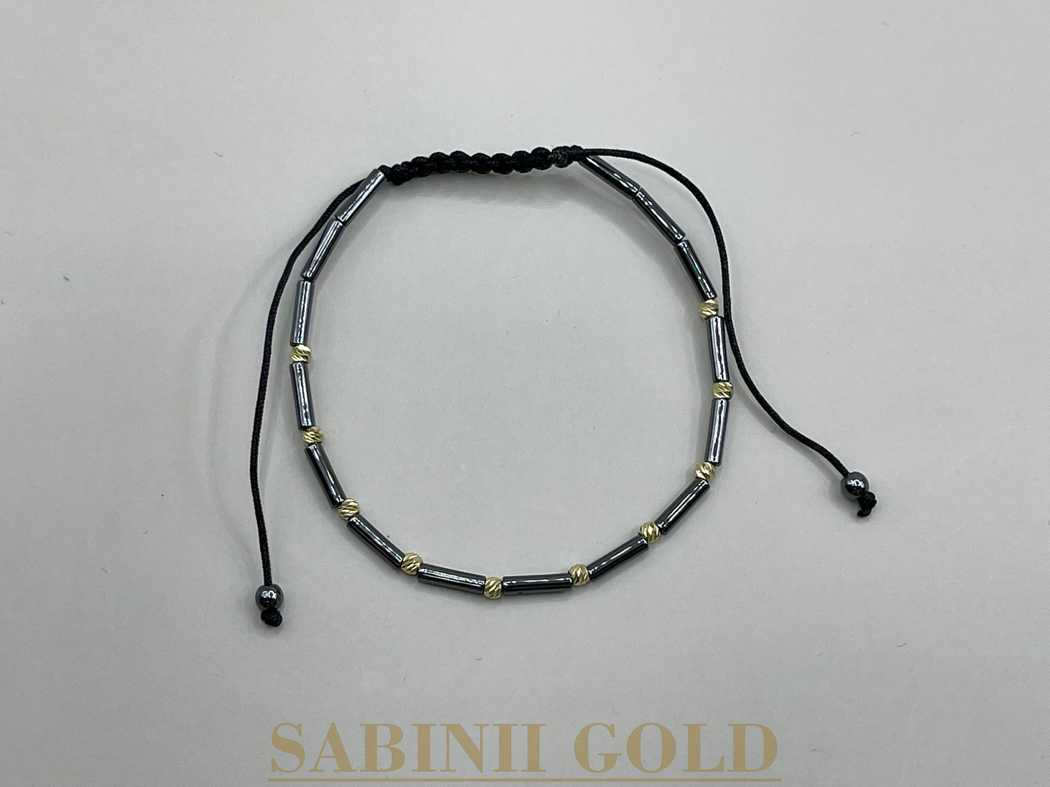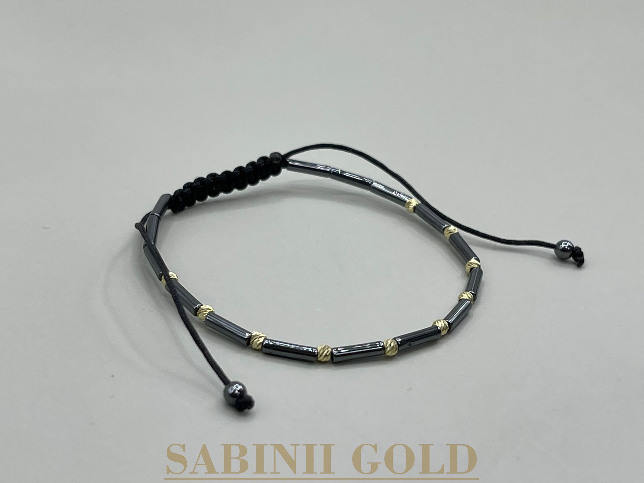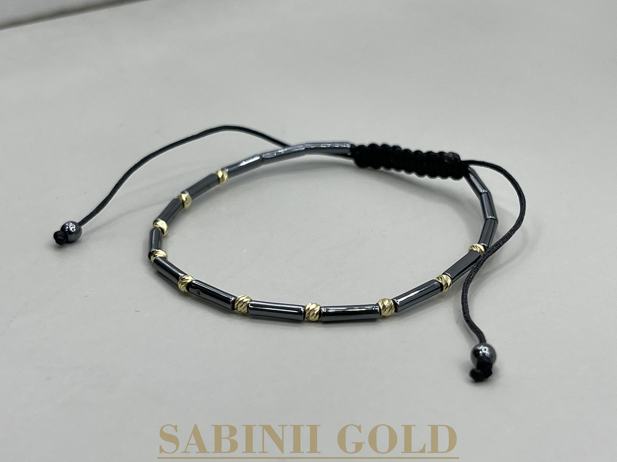 Brățară handmade elegantă, realizată din bile conice și 10 bile din aur de 14k de 2,5 mm, pentru un design rafinat și modern. Combinația dintre forma conică a bilelor și strălucirea aurului adaugă un aer sofisticat și unic brățării, făcând-o perfectă pentru a adăuga un strop de eleganță oricărei ținute.